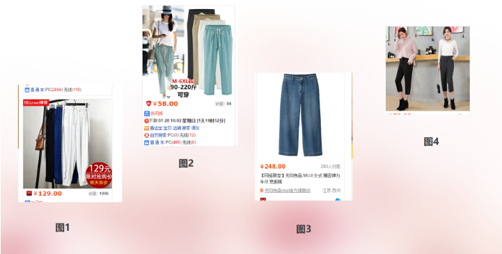 图二:有一个模特,然后旁边有该裤子的很多颜色,给买家的选择带来了多样性;