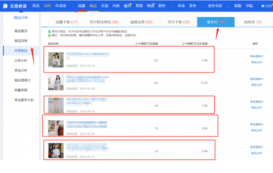 通过公式,很显然,当你的宝贝滞销太多,你的动销率就会被极大程度的影响!